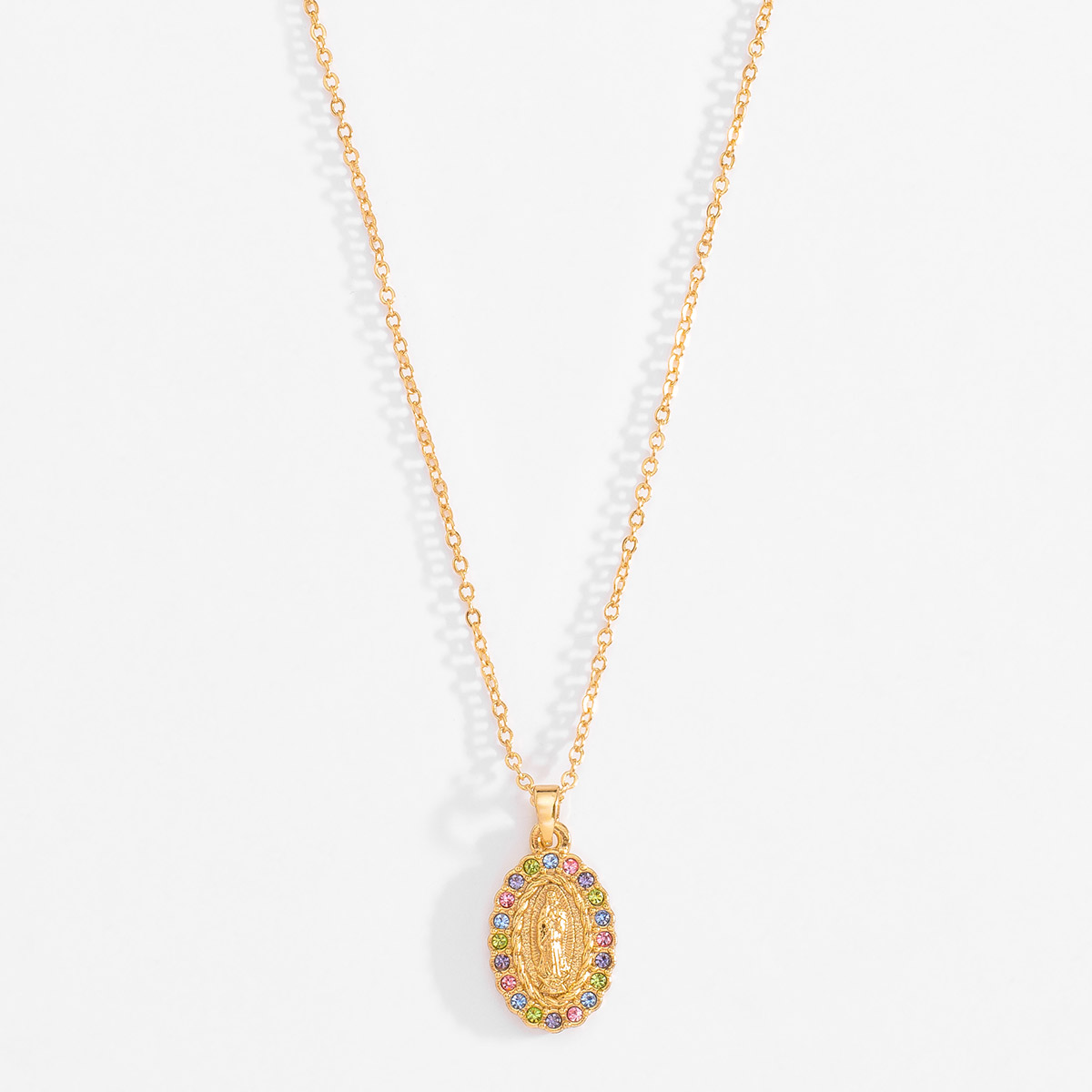 Medalla con cadena de 34 cm m᳠5 cm de extensin bae oro con piedras en varios tonos