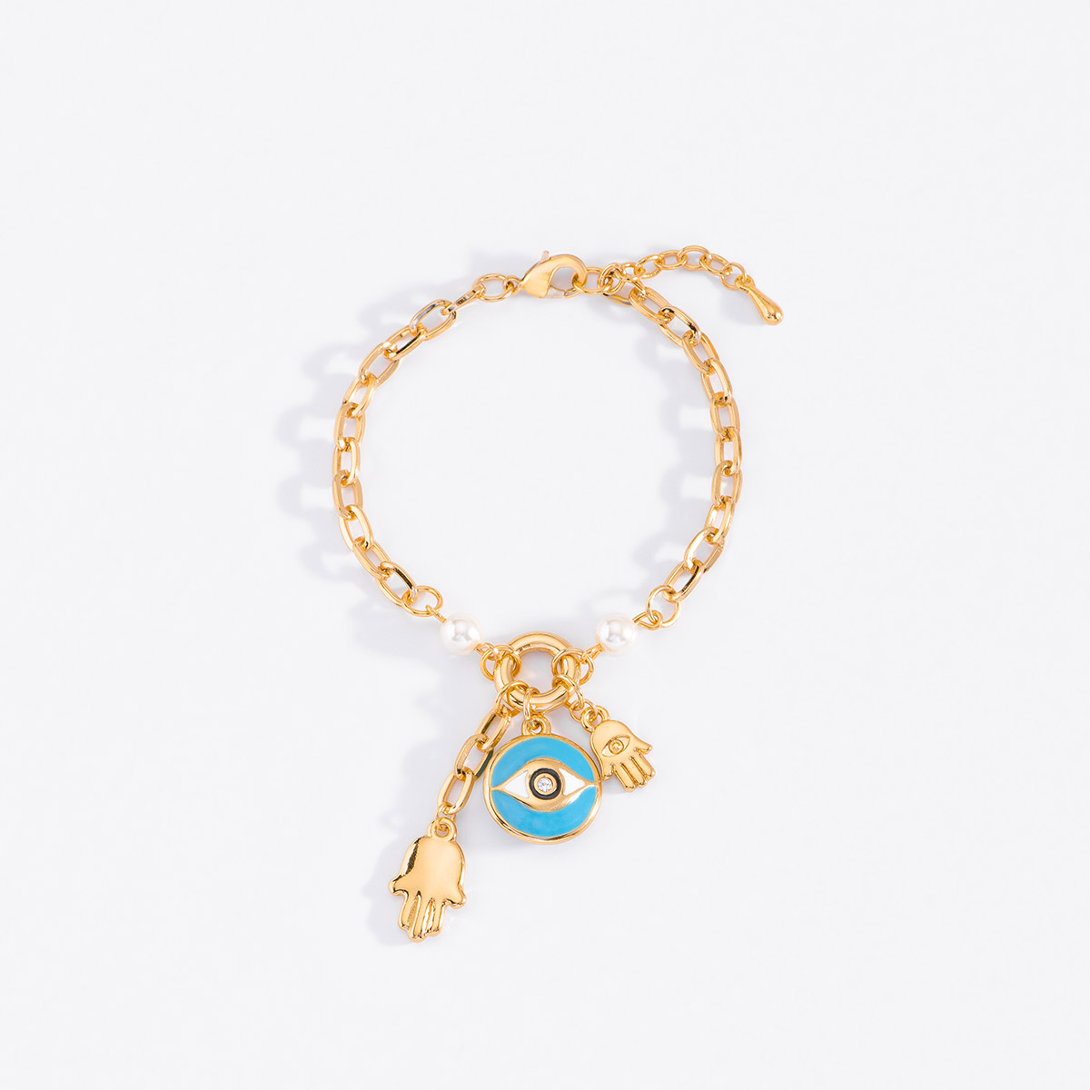 PULSERA DE 18 CM MAS 2 CM DE EXTENSION EN BAя DE ORO CON PERLA Y ESMALTE EN VARIOS TONOS